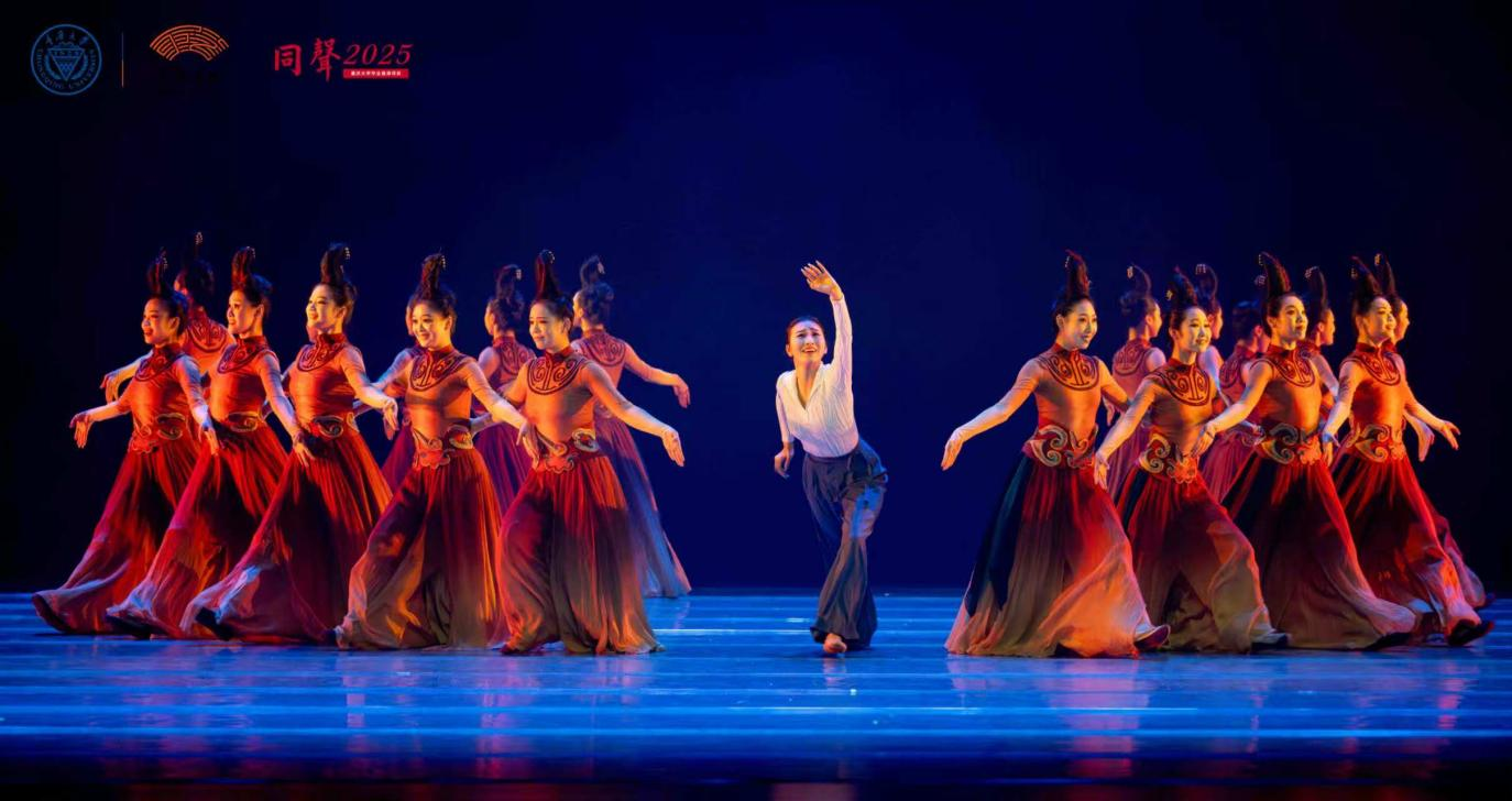 最后,在全体演员与校友代表的共同欢舞中,尾声《共赴华章》将晚会推向高潮,掌声不息,气氛热烈。