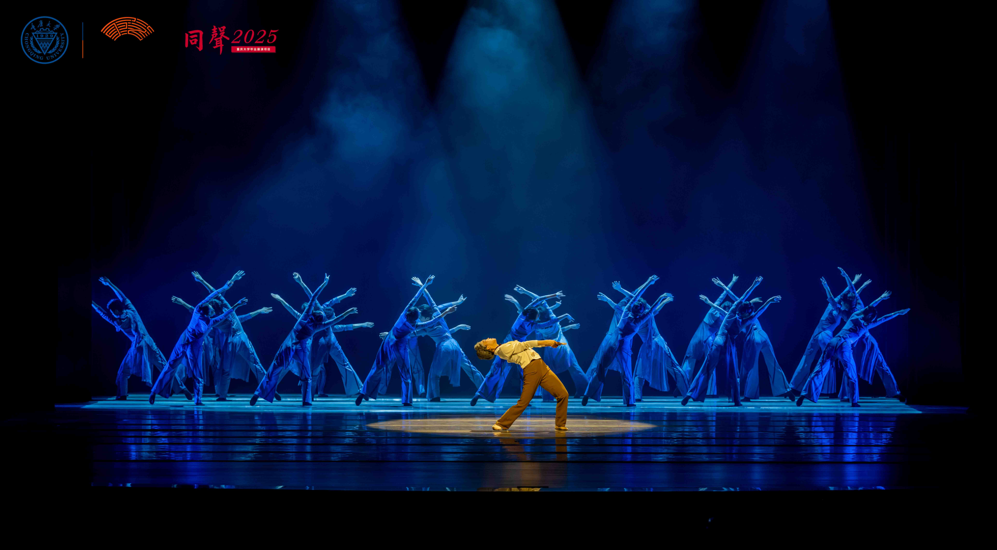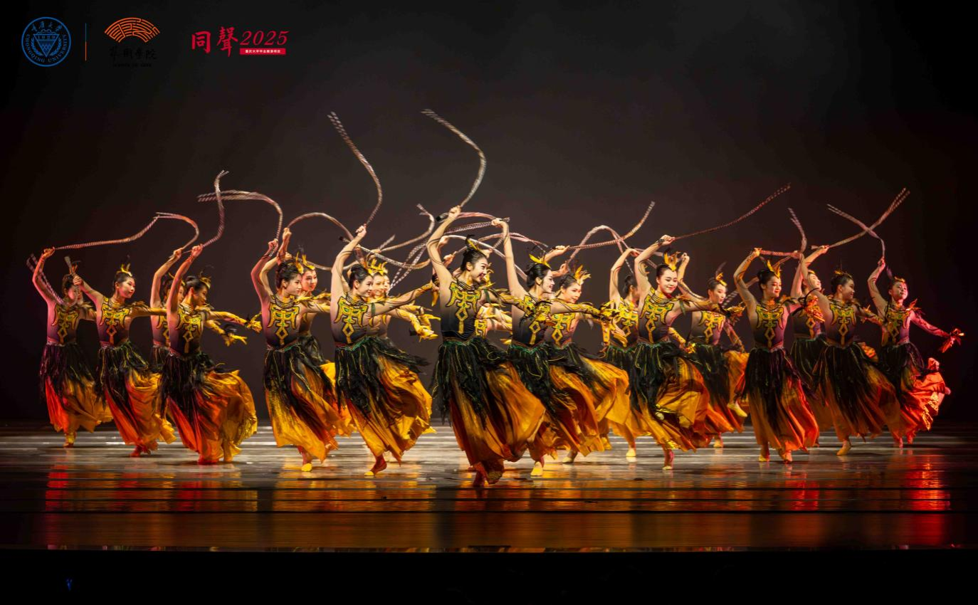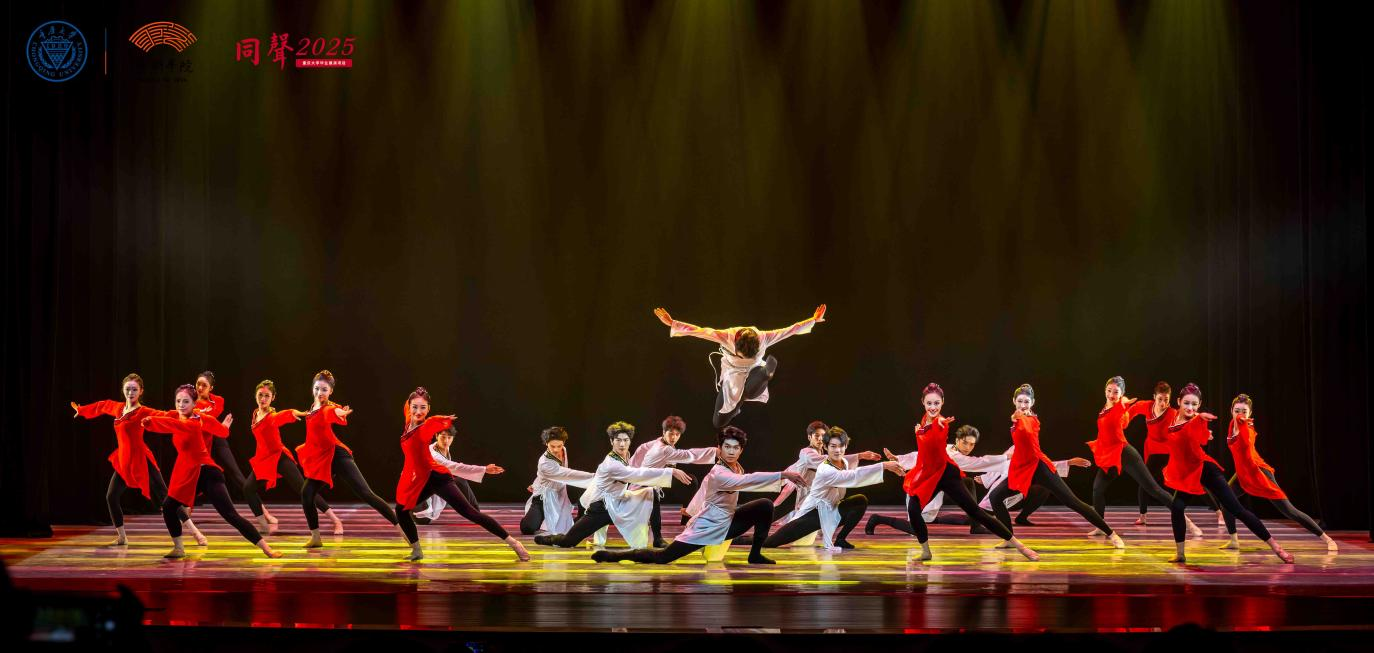 第二篇章“逐光·盛放”展示了舞蹈系深耕巴渝文化特色的艺术转化成果,集中呈现的作品皆为近年来荣获国家级、省级奖项的原创精品力作。《谁寄锦书来》讲述了红岩烈士杨汉秀之女李继业坚持寻母的故事;《巴女拓影》展现了东汉巴渝舞女“连臂曲胫、圜行而舞”的形象;《峡江吟》讴歌三峡先民不畏艰险、勇挑重担的伟大品格;《岩魂》将红岩精神中“坚如磐石”“坚贞不屈”的意象以舞蹈的诗意语言凝形铸魂;《金沙有鸟》勾勒出古蜀先民对太阳与自然时序的崇敬与礼赞;曾亮相2024年央视春晚的《手龙人》以国家级非遗项目“铜梁龙舞”为创作素材,完美地将当代舞台创作技术与传统龙舞套路相结合。