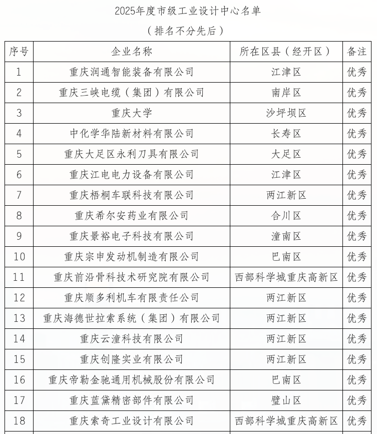 成功入选“2025年度市级工业设计中心名单”,且以“优秀”成绩获评。