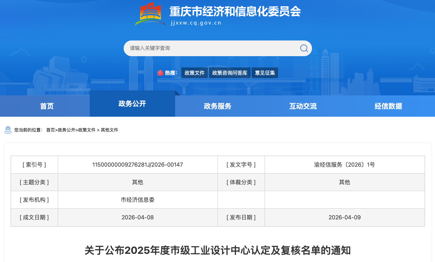 4月9日,重庆市经济和信息化委员会正式发布《关于公布2025年度市级工业设计中心认定及复核名单的通知》。根据通知,经过企业自主申报、区县经信部门推荐、专家评审、现场审查、委党组会审议和网上公示等程序,成人影视片