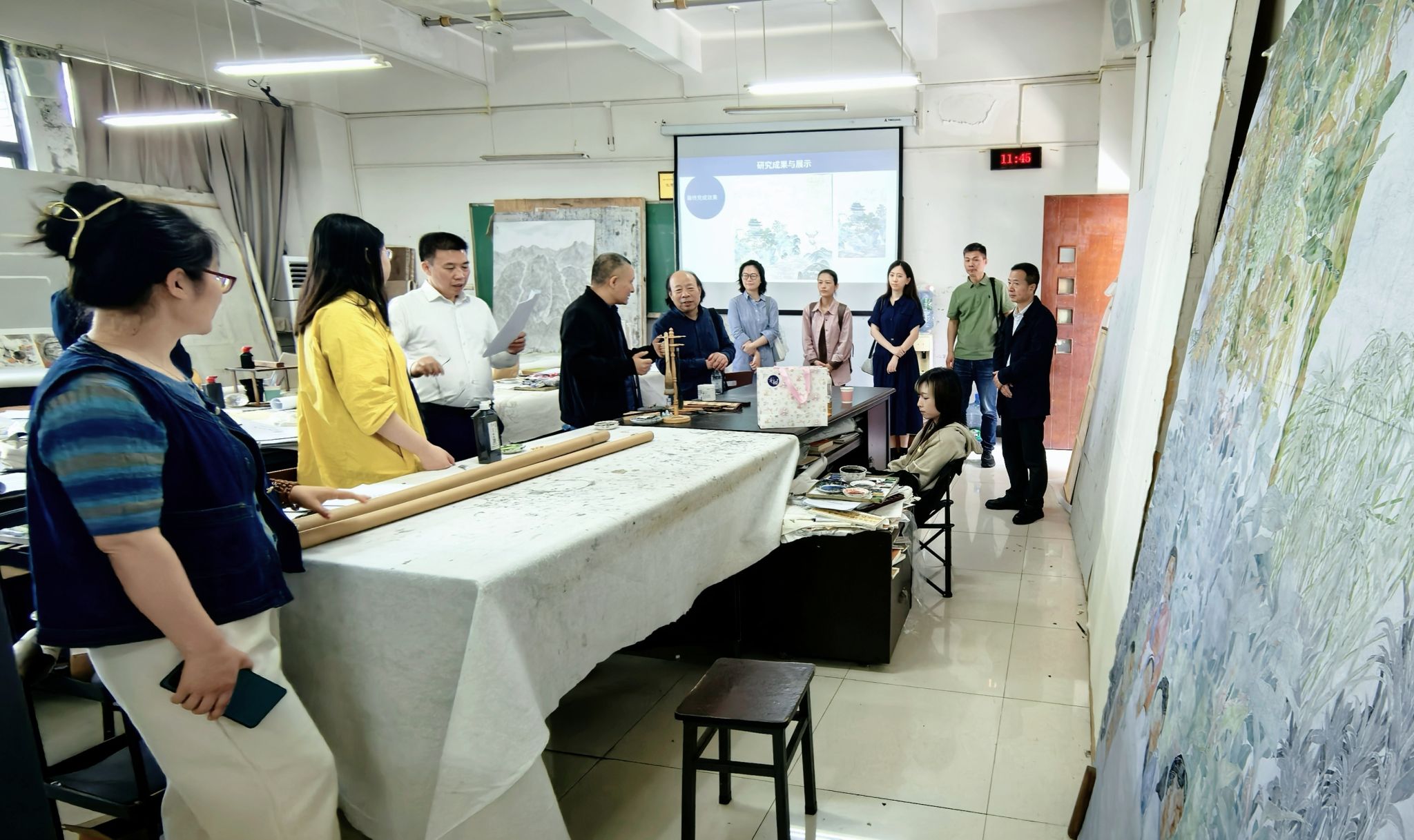 美术学系主任武若尘、副主任高源,设计学系教师朱媛媛、党政办段欣宜等参加调研座谈。