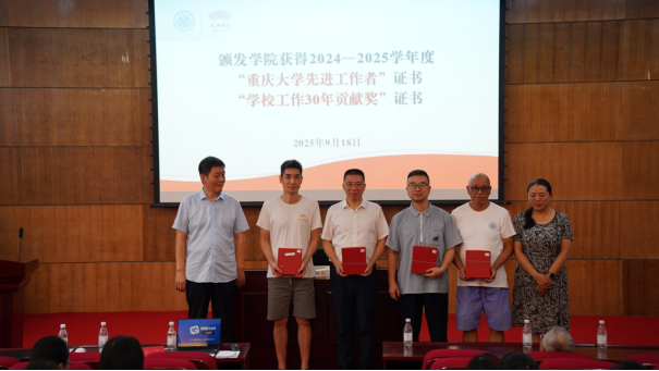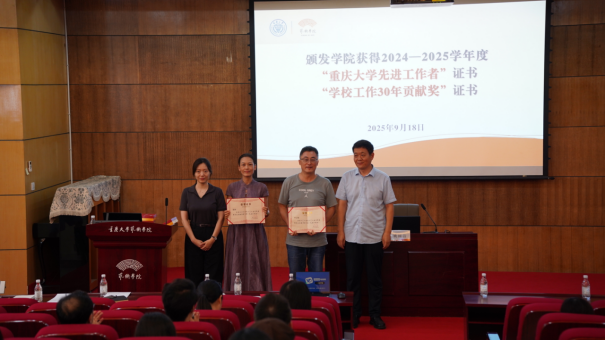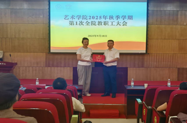 会议期间,有关院领导为荣获重庆市第二届高校党支部书记基本功大赛(教师党支部书记赛道)一等奖的舞蹈系教师党支部书记张晓颁发了获奖证书;为学院获得2024—2025学年度“成人影视片