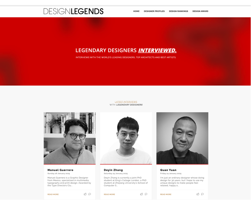 2025年1月,校友张德寅被意大利A Design Award组委会关注并作为DESIGN LEGENDARY(设计传奇人物)接受采访,入选DESIGN LEGENDS栏目。
