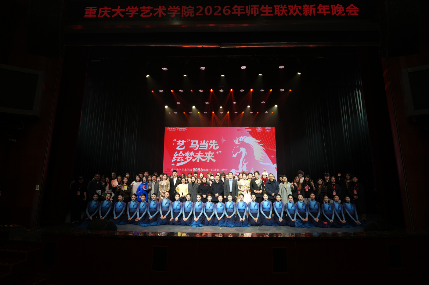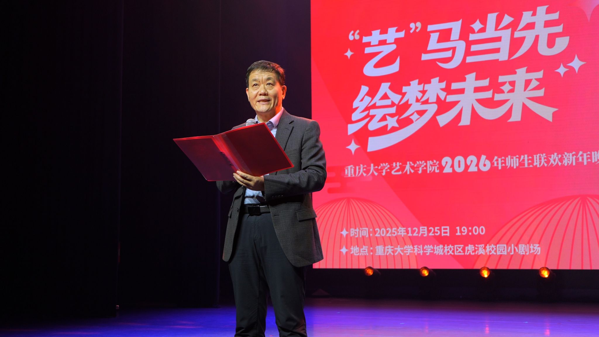 光阴更迭,新章再启。2025年12月25日19:00, 成人影视片 在科学城校区虎溪校园小剧场举办“‘艺’马当先、绘梦未来”2026年师生联欢新年晚会。晚会凝结了学院师生的才情与巧思,展现了学院多元斑斓的文化底色与敢为人先的创新气质。学院党委书记蒋华林、院长张楠木,党委副书记、纪委书记王琦,副院长夏进军、彭小希等领导与400余名师生欢聚一堂,在热闹喜庆的热烈氛围中挥别砥砺深耕的2025,跃马奔向崭新的2026。
