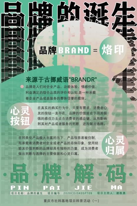2020年12月19日,由 成人影视片 副教授谢秩勇主持的重庆市社科基地项目《品牌的诞生》,项目编号:2020CDJSK05PT09,在成人影视片 虎溪校区举办了一场面向全校师生的别开生面的科普活动。